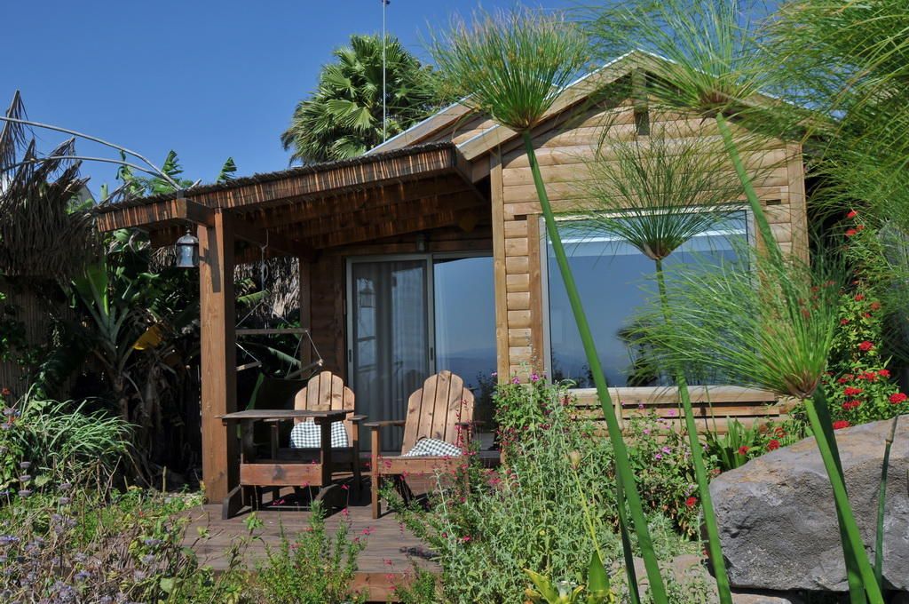 החצר המדהימה שופעת פינות חמד וצופה אל הנוף המדהים. גם בקתת העץ (אחת מהשתיים במתחם) מאופיינת באותו סוג של קסם ויופי אשר קיים גם מבחוץ. העיצוב המעודן, הטבעי והמושקע, שופע טעם טוב, אסטטיקה אנינה ופשטות מרגשת, ויוצר אווירה חלומית,טהורה, מזככת נפש.
